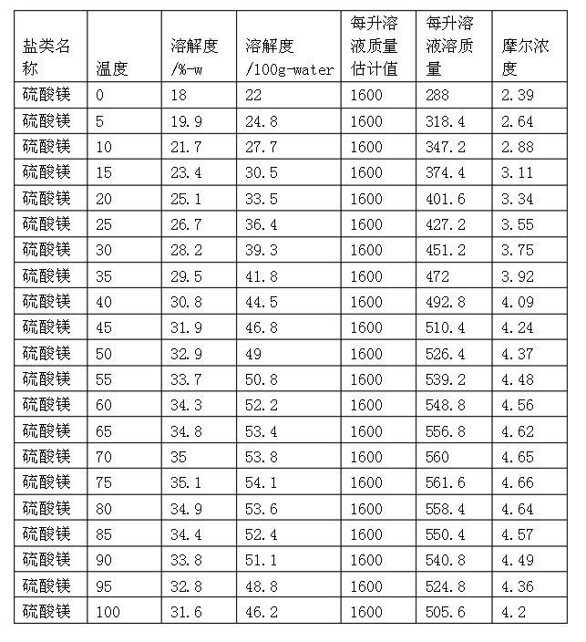下面来看下0-100摄氏度不同温度下的硫酸镁溶解度数据分析介绍吧: